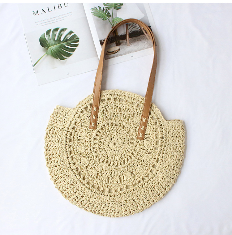 Women Hollow Out Handmade Woven Shoulder Beach Bag