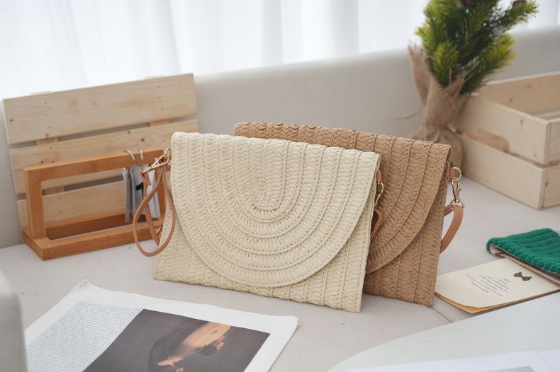 Corn Husk Straw Woven Large Capacity Beach Vacation Shoulder Tote Clutch Bag